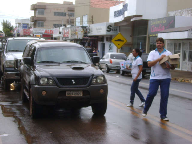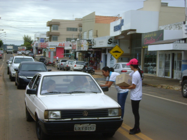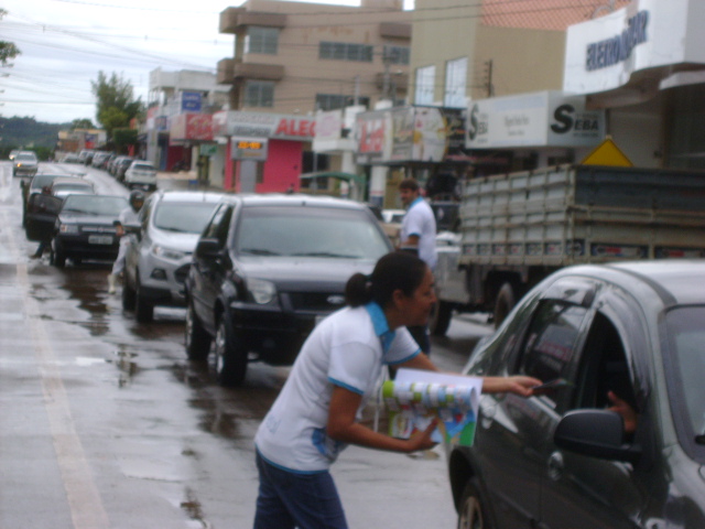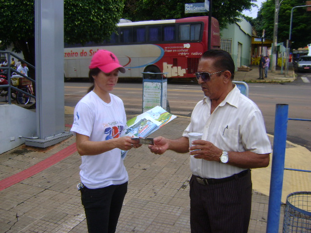 Os Funcionários Fabiano Siemionko Suris, Rosilene Faustino, Ivone Calasans e Luis Eduardo Bogarim, realizaram uma blitz de conscientização ao uso da água, com a distribuição de cartilhas pedagógicas para o público adulto e infantil, assim como de copos de água envasada pela empresa.