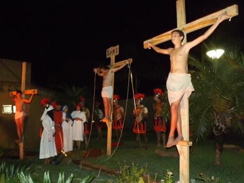 O grande número de fiéis que compareceram a Igreja Matriz na noite desta segunda-feira (25) e acompanharam o trajeto da via sacra até a Praça Ernesto Solon Borges no centro de Camapuã, se emocionaram com a interpretação do Grupo Jovem da Paróquia São João Batista.
