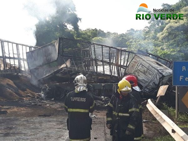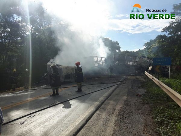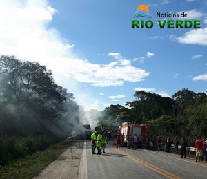 A rioverdense Beatriz Rodrigues e suas duas filhinhas, Alekia Rodrigues de Carvalho e Maria Eduarda, morreram carbonizadas depois que duas carretas bateram de frente e pegaram fogo no km 474 da BR-364, na região do município de Jangada, a 82 km de Cuiabá, na tarde deste sábado (18). As três vítimas estavam num veículo carregado com soja, cujo condutor Sinval, também ficou gravemente ferido e foi levado para o Pronto-Socorro de Cuiabá.