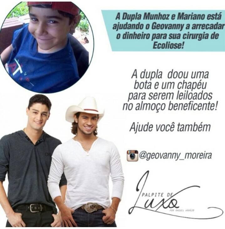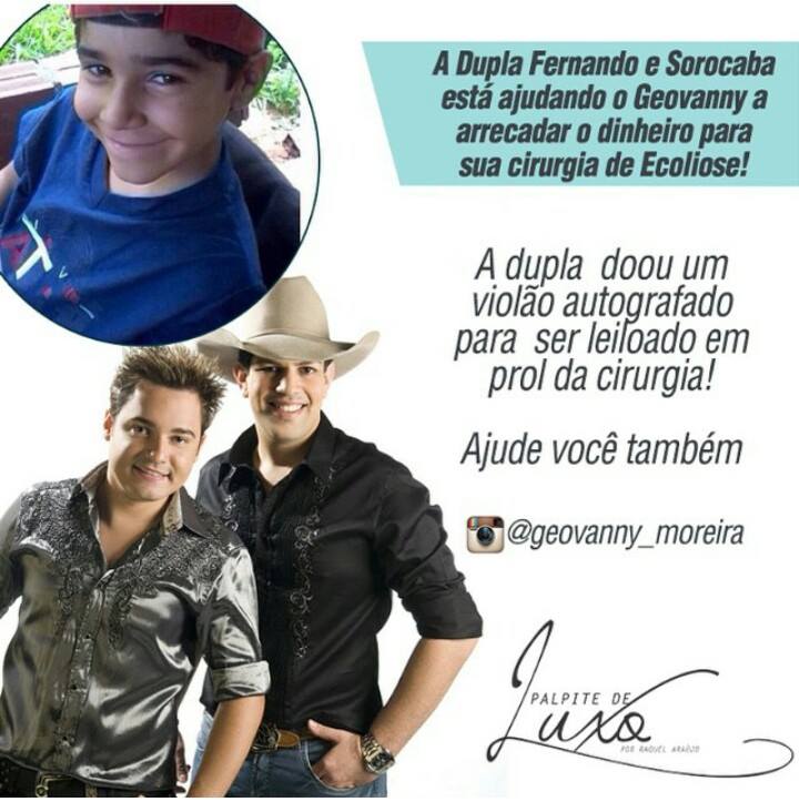 Geovanny Moreira Barcelos, de 12 anos, filho do cantor e compositor Airo Barcelos (falecido em 2010), está precisando de doações para realizar uma cirurgia de Escoliose que custa 35 mil reais.