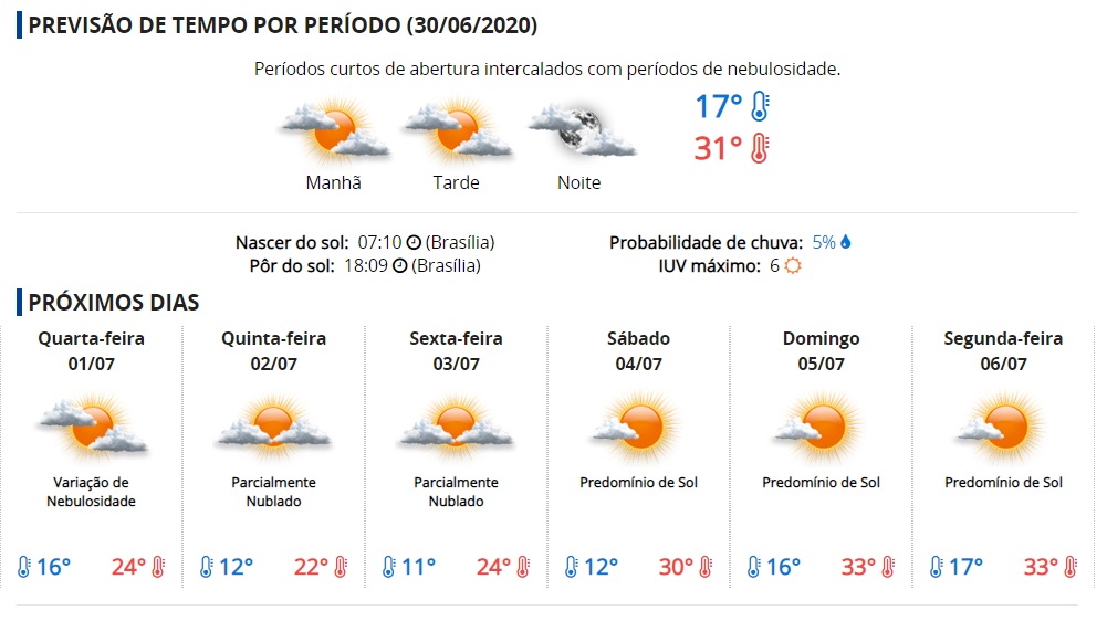 Confira abaixo a previsão para Camapuã nos próximos dias segundo CPTEC/INPE
