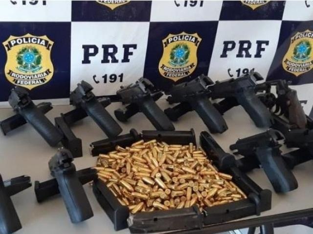 Os policiais, então, fez vistoriaram o carro e descobriram no tanque de combustível 13 armas de fogo, sendo seis pistolas calibre 380, sete pistolas calibre 9mm, um revólver calibre 38, 23 carregadores de munição e 360 munições de calibre 9mm.