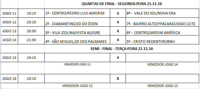 As oito melhores equipes disputarão nesta segunda-feira (21) a fase quarta de final, os jogos serão os seguintes: