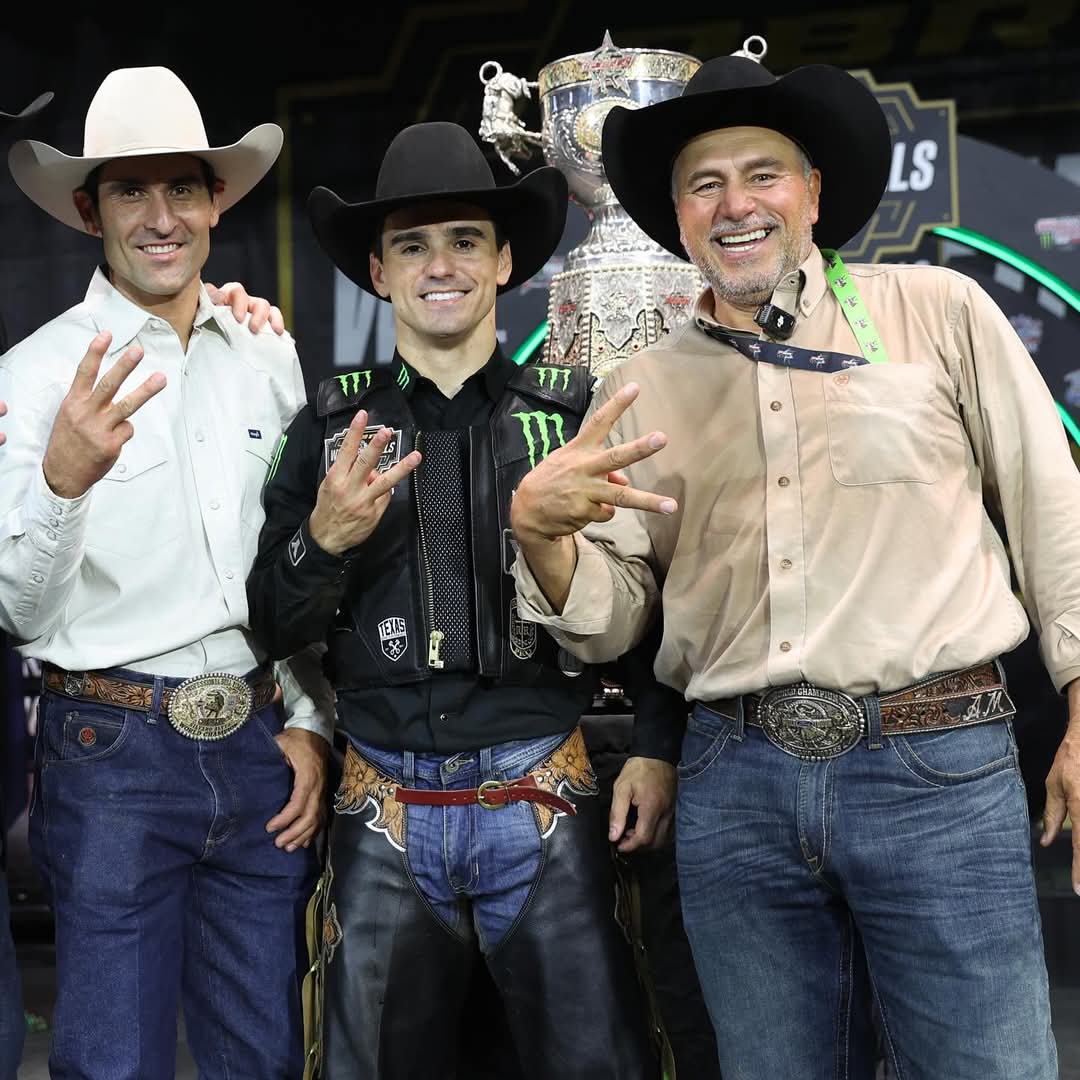 O brasileiro José Vitor Leme fez história neste domingo (18) e conquistou seu terceiro título mundial de montaria em touros, após vencer o PBR World Finals, no AT&T Stadium, em Arlington, Texas, nos Estados Unidos. Ele se torna o terceiro atleta da modalidade a atingir o feito, juntando-se aos compatriotas Adriano Moraes e Silvano Alves.