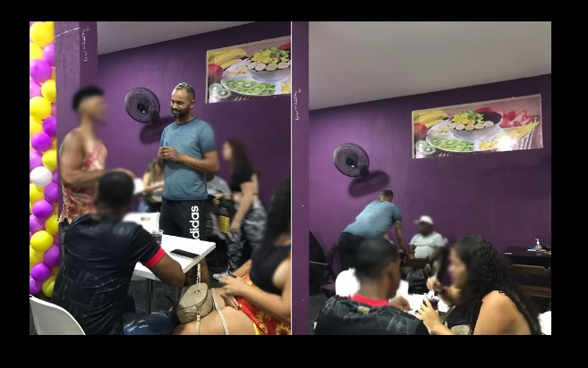 Goleiro Bruno recepcionou convidados e atendeu servindo lanches na loja de açaí em São Pedro da Aldeia — Foto: Arquivo Pessoal