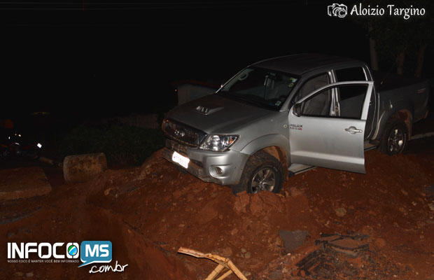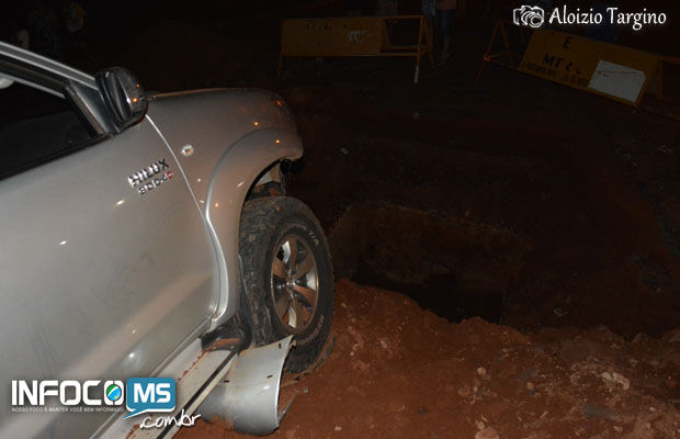 Parece notícia repetida, mas infelizmente não é, outro motorista foi vítima do ‘buraco da prefeitura’, uma enorme cratera aberta há mais de um mês no cruzamento das ruas João da Mota com Habibi Lawandes, na Vila Diamantina em Camapuã, onde a galeria de água pluvial deveria ser consertada e novamente tapada, mas continua aberta colocando em risco inúmeros motoristas, ciclistas, motociclistas, pedestres e crianças que brincam próximo ao local.