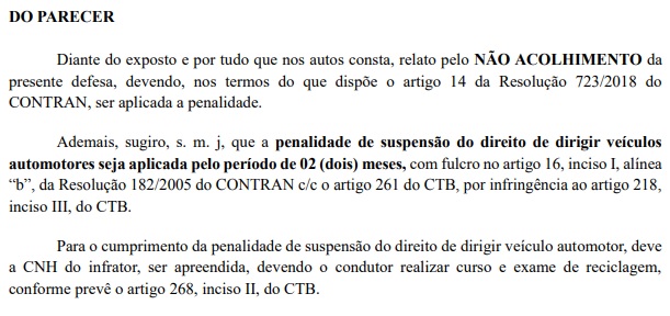 “Tive que pagar a multa para transferir e até pensei que tinha acabado essa patifaria com o pagamento, mesmo sendo ilegalmente cobrado pelo Detran. Ocorre que posteriormente o mesmo órgão deu entrada em um processo de suspensão da minha CNH”, disse. Isso porque segundo o CTB (Código de Trânsito Brasileiro), velocidade acima de 50% do limite da via resulta em suspensão direta da licença para dirigir.
