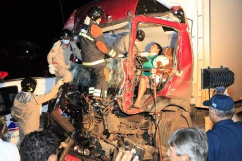 O motorista de um caminhão ficou preso nas ferragens, durante uma hora, na noite desta segunda-feira (30), depois de uma colisão no quilometro 684 da BR-163, em Rio Verde.