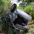 Motorista perde o controle, sai da pista e capota carro na BR-060 em Camapuã