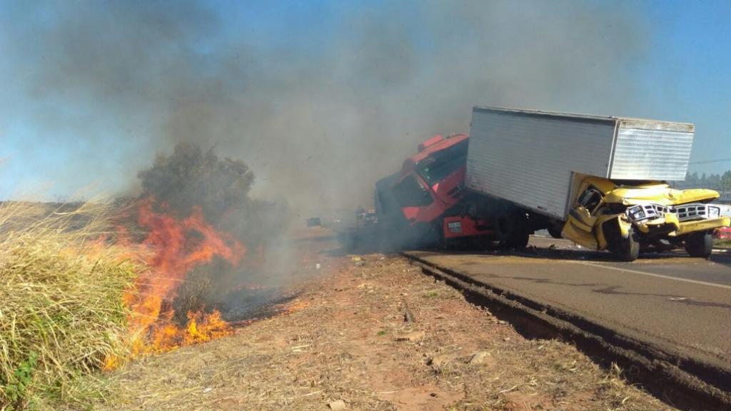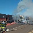 Acidente grave vitimou ao menos duas pessoas no início da tarde de hoje, por volta das 14h, na BR-163, saída para São Paulo, em Campo Grande. Carreteiro morreu carbonizado depois de colidir na traseira de outra carreta, e motorista do carro de passeio que seguia atrás, também faleceu.