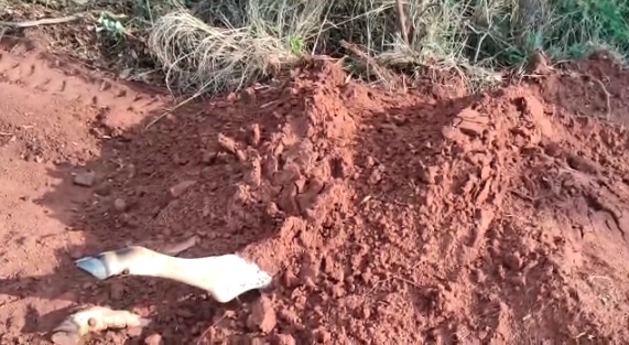 Após ser flagrado, ele retornou ao local com um trator para desatolar sua caminhonete e jogar apenas um pouco de terra que mal cobriu as carcaças, conforme fotos abaixo.