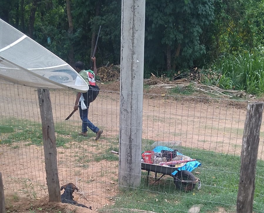 A PM recebeu denúncia anônima através do 190, dizendo que na rua Paraguai do bairro Belo Horizonte, um homem passeava pela rua com uma arma em uma das mãos e um facão na outra, próximo a sua residência.