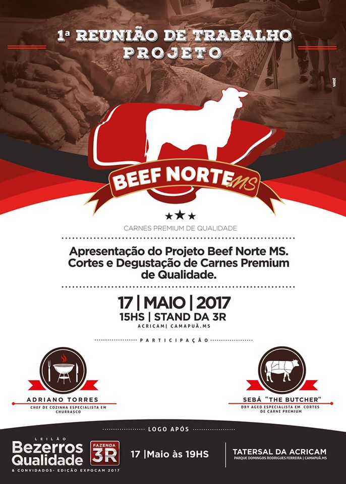 Será apresentado oficialmente o projeto Beef Norte MS, terá degustação de 'Carnes Premium de Qualidade' com 'Cortes Especiais' e a participação de Adriano Torres, chefe de cozinha especialista em churrasco e Sebá "The Butcher", Dry Aged Especialista em Cortes de Carne Premium.