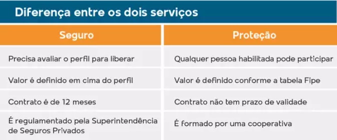 “As obrigações e deveres são os mesmos. A diferença é que o seguro faz a avaliação do perfil do condutor e tem contrato anual. A proteção veicular não avalia o perfil e não tem fidelidade. A cobertura é em cima da tabela Fipe e tem contrato sem validade”, comenta.