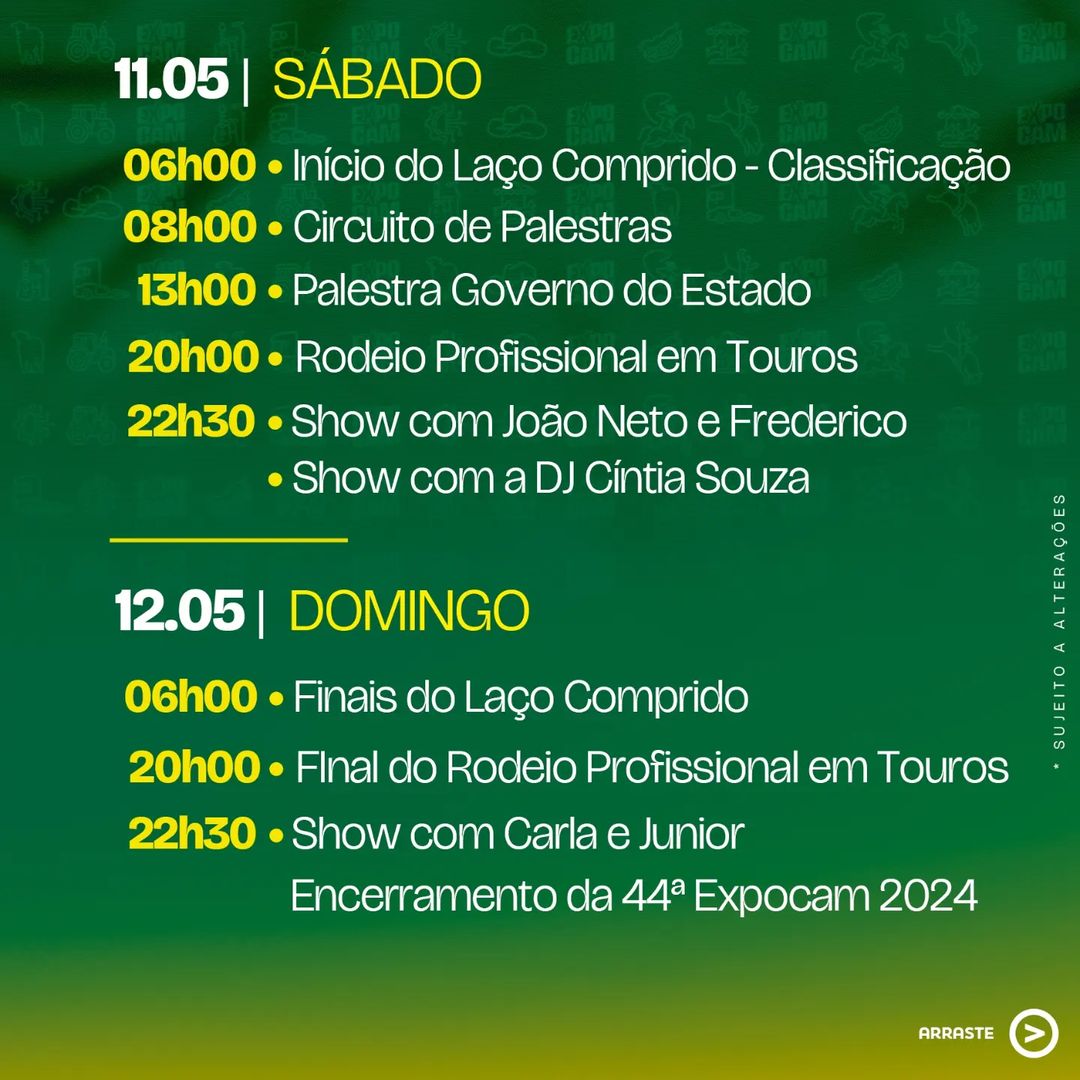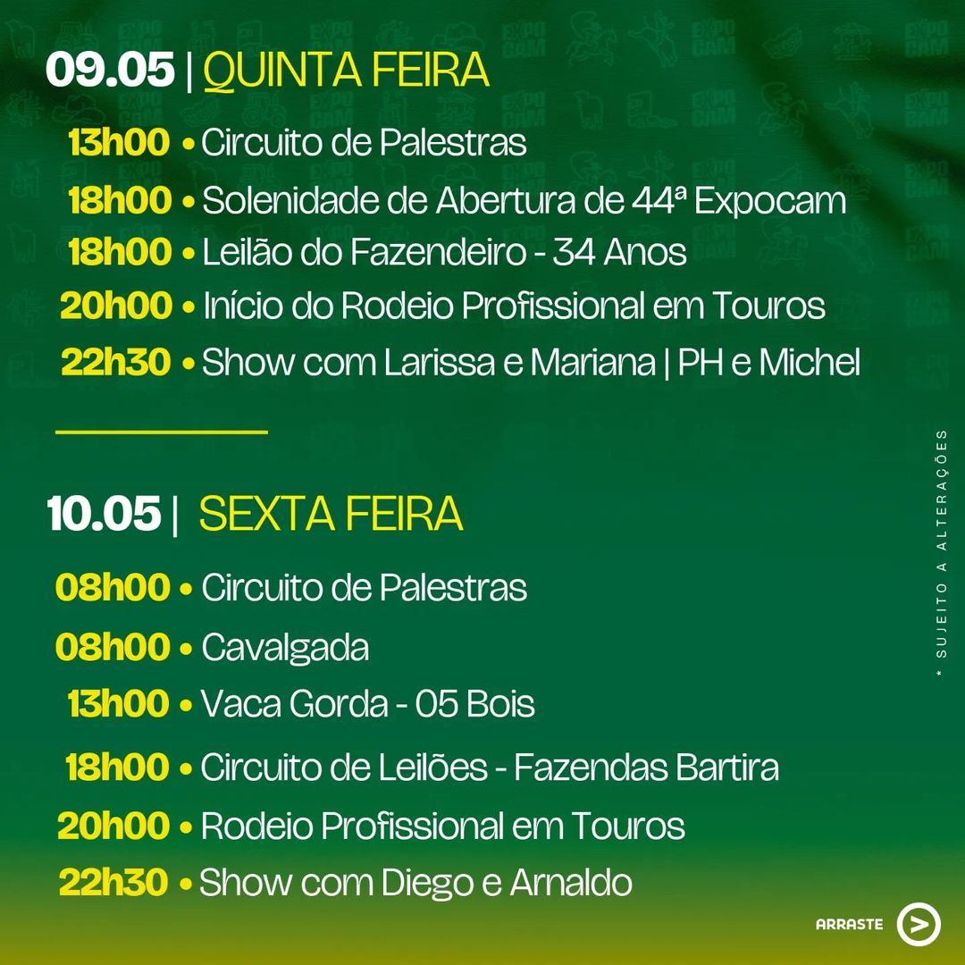 Venha para a Expocam 2024. Entrada franca todos os dias.