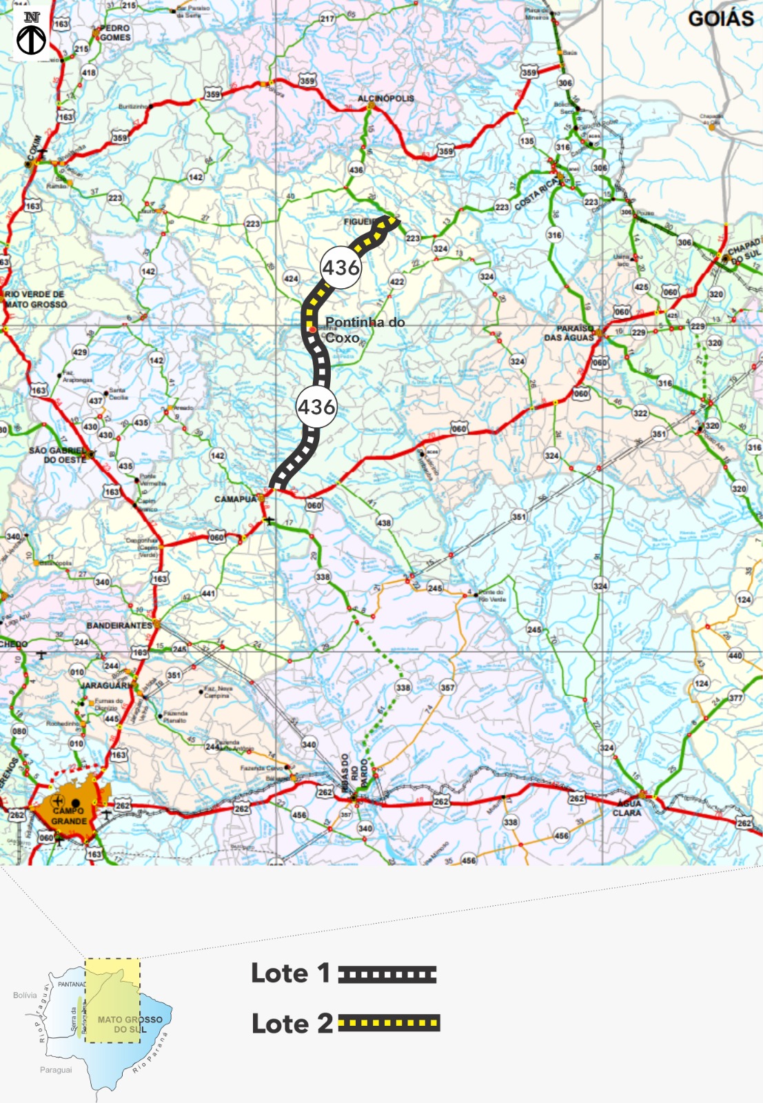 O primeiro lote da obra sai de Camapuã até a Pontinha do Cocho. Este trecho tem 61,60 km, com investimento de R$ 140,5 milhões. Esta etapa já está com 76% dos trabalhos concluídos, seguindo para a reta final.
