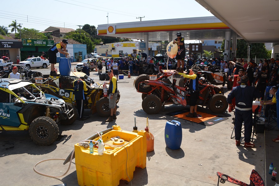 Equipes do Rally Sertões fazendo parada no Posto Tapajós em Camapuã para abastecer em 2019 - Foto: InfocoMS