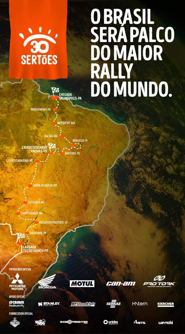 A largada está prevista para Foz do Iguaçu (PR), no dia 27, e a chegada marcada para Salinópolis (PA), no dia 10 de setembro. Ao todo serão 14 etapas da competição, formada por quatro tipo de veículos: carro, UTV, moto e quadriciclo.