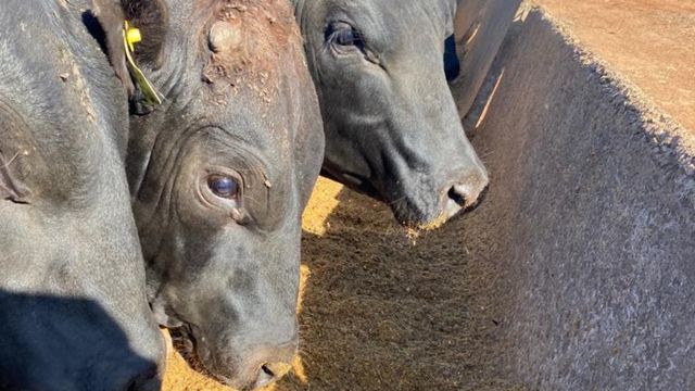 Bovinos se alimentando no cocho do confinamento. Foto: Divulgação