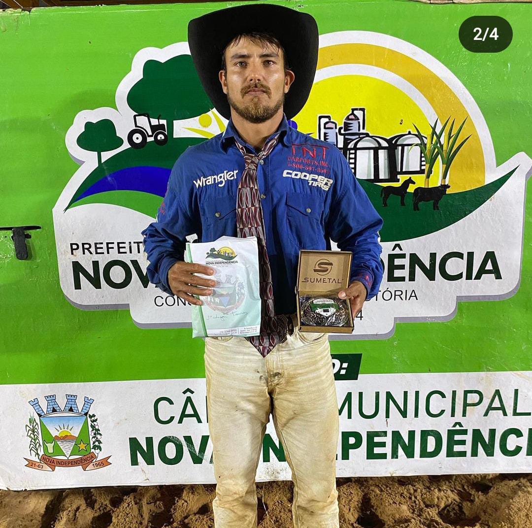 O peão de rodeio em touros João Cesar Fernandes (Cesinha), 29 anos, de Camapuã, cidade a 140km de Campo Grande, sagrou-se campeão da 40ª Festa do Peão de Nova Independência-SP e faturou o prêmio de R$ 10 mil.