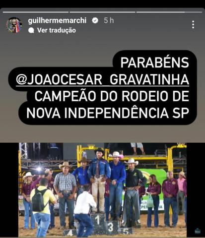 João Cesar fez questão de agradecer o campeão mundial de rodeio em touros da PBR, Guilherme Marchi, com quem trabalha e treina para os rodeios. Cesinha relatou a nossa redação que recebe muitos conselhos e dicas de como melhorar sua performance nos touros. Foi Guilherme quem conseguiu a vaga para Cesinha disputar o rodeio de Nova Independência-SP.