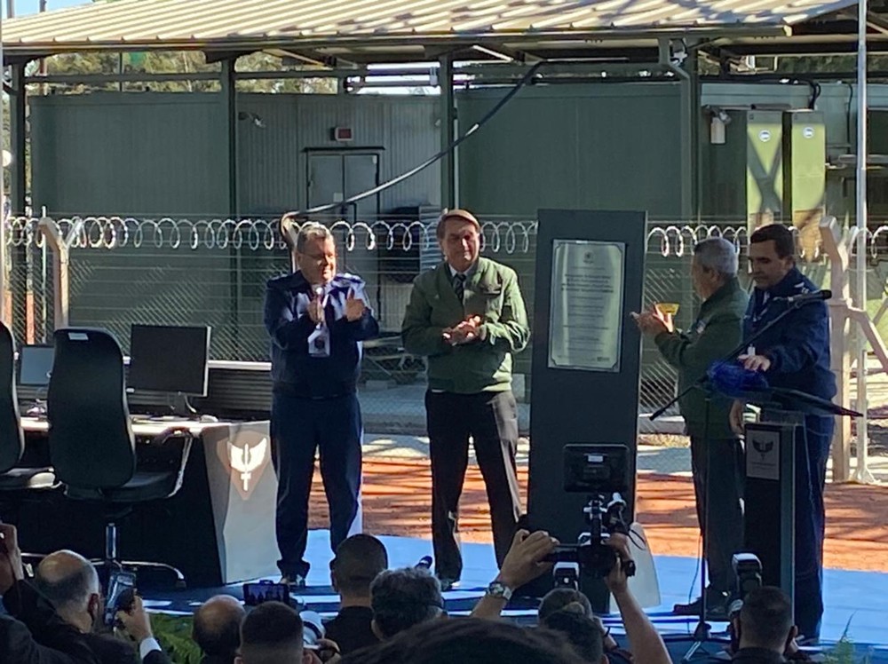 Jair Bolsonaro e autoridades na inauguração da estação de radares em Ponta Porã (MS) — Foto: Martim Andrada/TV Morena