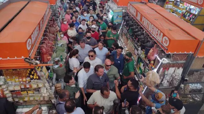 Seguido por multidão, presidente Jair Bolsonaro faz tour pelo Mercado Municipal de Campo Grande. (Foto: Divulgação)