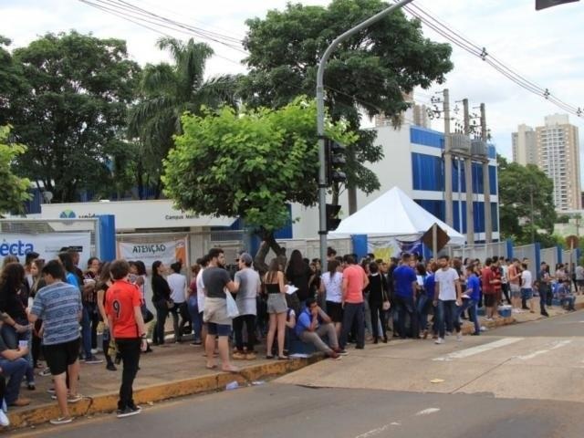 Acadêmicos em frente a Uniderp em dia de prova do Enem, em 2018 (Foto/Arquivo: Marina Pacheco)