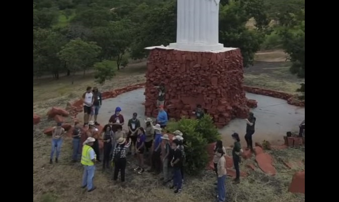 Equipe de pesquisa se reunindo na base do Cristo Redentor em Camapuã - imagem: reprodução