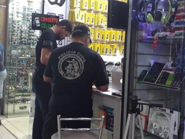 Conforme o delegado Reginaldo Salomão, titular da Derf, a operação tem como alvo lojas de revenda e manutenção de celulares do centro comercial e das lojas ao redor do prédio.