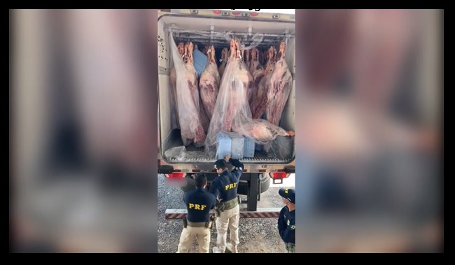 Cocaína avaliada em R$ 60 milhões foi encontrada em meio a um carregamento de carne bovina que estava sendo transportada em um caminhão abordado pela PRF (Polícia Rodoviária Federal) na BR-158, em Paranaíba, município a 411 quilômetros de Campo Grande.