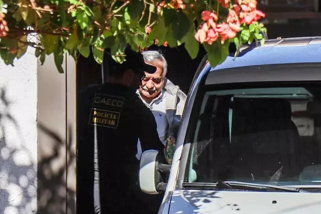 Cezário entrando em viatura do Gaeco após buscas na casa dele. (Foto: Henrique Kawaminami)