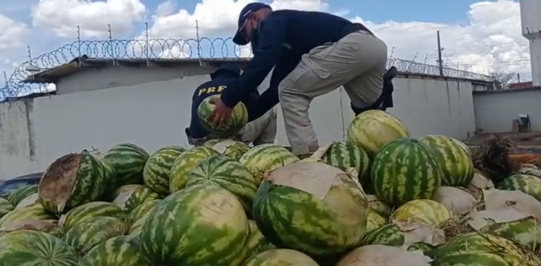 Nesta quinta-feira 17 de dezembro, a Policia Rodoviária Federal em fiscalização pela BR-158, em Aparecida do Taboado (MS), prendeu um caminhão, Mercedes Benz, estacionado em um restaurante às margens da rodovia, carregado com melancias.
