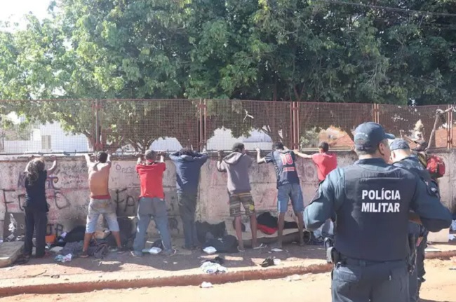 Polícia Militar durante "enquadro" a usuários na região central (Foto: Paulo Francis/Arquivo)