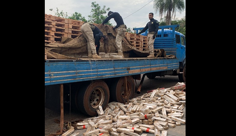 Agentes da PRF (Polícia Rodoviária Federal) apreenderam oito toneladas e 580 quilos de maconha durante na madrugada de quarta-feira (26). A droga estava escondida em uma carga de sucata que foi interceptada na Linha Internacional, entre Ponta Porã e Pedro Juan Caballero, no Paraguai.