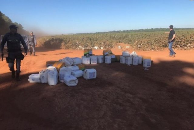 Uma quadrilha de 20 homens invadiu uma fazenda e furtou cerca de R$ 3 milhões em defensivos agrícolas na região rural de Itiquira (361 km de Cuiabá). As informações são de que os suspeitos estavam encapuzados e chegaram no local na manhã de domingo (22).