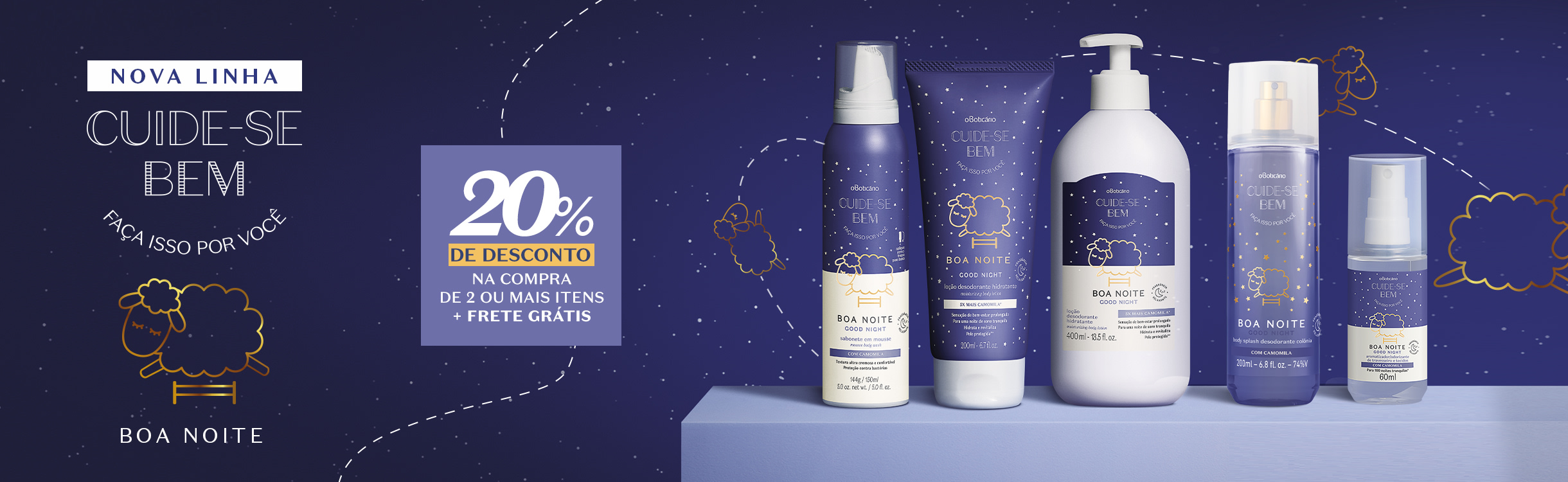 A loja O Boticário de Camapuã convida você à conhecer os lançamentos da linha Cuide-se Bem 'Boa Noite' e os novos itens na linha da perfumaria masculina 'Men'.