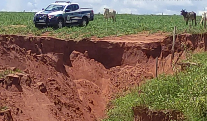 Policiais Militares Ambientais de Costa Rica realizavam fiscalização nas propriedades rurais do município de Camapuã e autuaram no último dia 27, um proprietário rural em razão de processos erosivos.