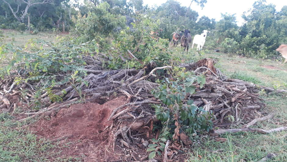 O proprietário da fazenda realizou o desmatamento entre o mês de novembro de 2015 e dezembro de 2017. A área já estava com plantio de pastagem e criação de gado bovino. Parte da madeira proveniente da vegetação desmatada estava em meio à pastagem no local.