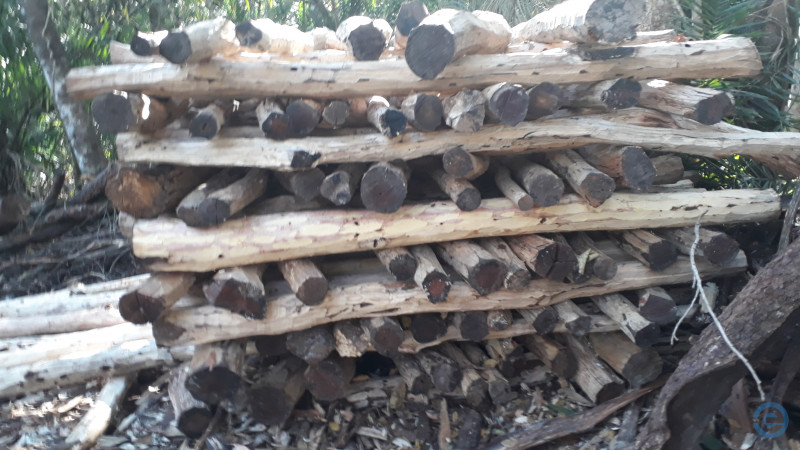 30,05 m³ de madeira, sendo 1.743 estacas e postes de origem nativa das espécies Aroeira, Pau Terra, Chapadim, Sucupira, Angico e Carvão Branco estavam armazenados ilegalmente escondidos em meio a uma mata na fazenda e foram apreendidos.