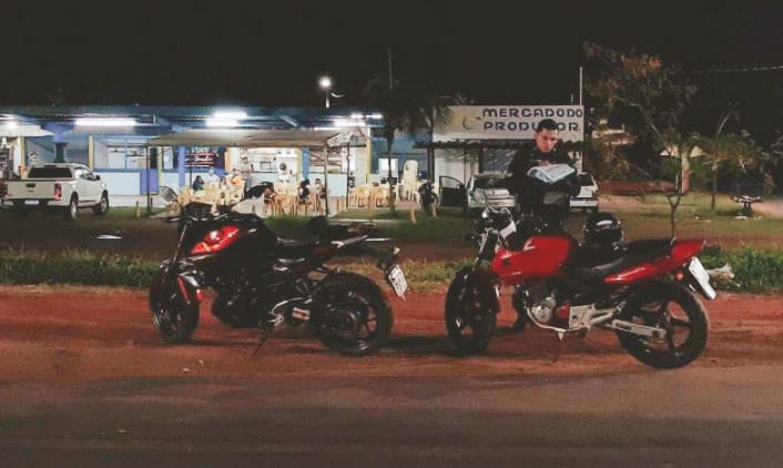 A equipe de serviço seguiu em direção a motocicleta, conseguindo abordar o condutor na Rua Pedro C. Costa esquina com a Rua Pedro Pantuia, sendo realizado busca pessoal.