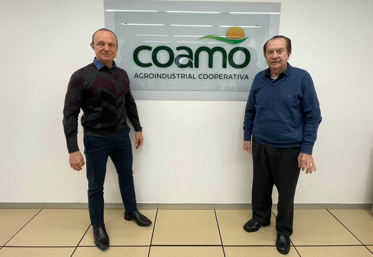 Presidente Executivo da cooperativa, Airton Galinari e o presidente dos Conselhos de Administração da Coamo e Credicoamo, José Aroldo Gallassini - Imagem: reprodução