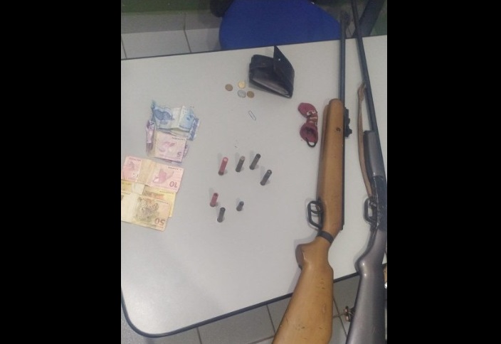 Conforme informações da PM, os policiais foram acionados por populares relatando que haviam dois homens em um bar com uma espingarda em mãos.